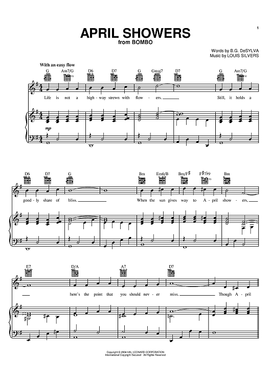 Digital Sheet Music for April Showers by Judy Garland, Al Jolson, Louis Silvers, Buddy DeSylva scored for Piano/Vocal/Chords; id:381069