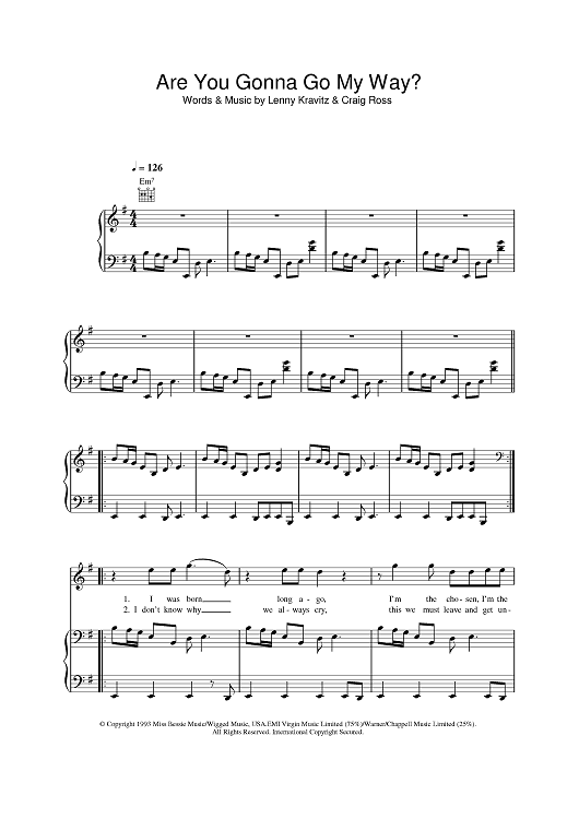Digital Sheet Music for Are You Gonna Go My Way? by Lenny Kravitz, Craig Ross scored for Piano/Vocal/Chords; id:388368
