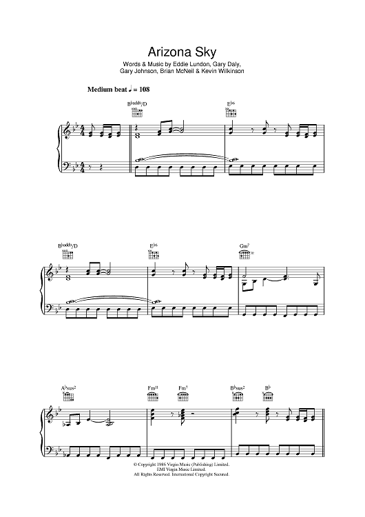 Digital Sheet Music for Arizona Sky by China Crisis, Gary Daly, Gary Johnson, Eddie Lundon, Brian McNeil, Kevin Wilkinson scored for Piano/Vocal/Chords; id:398810