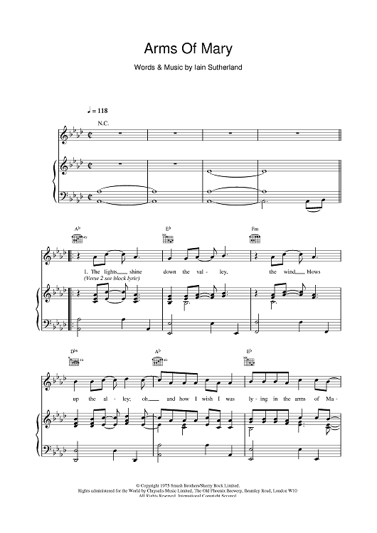 Digital Sheet Music for Arms Of Mary by Boyzone, Iain Sutherland scored for Piano/Vocal/Chords; id:376320