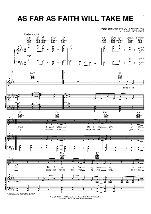 Digital Sheet Music for As Far As Faith Will Take Me by Kyle Matthews, Scott Krippayne, The Martins scored for Piano/Vocal/Chords; id:380459