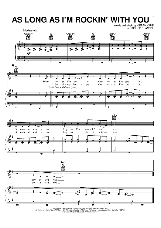 Digital Sheet Music for As Long As I'm Rockin' With You by Kieran Kane, John Conlee, Bruce Channel scored for Piano/Vocal/Chords; id:384571