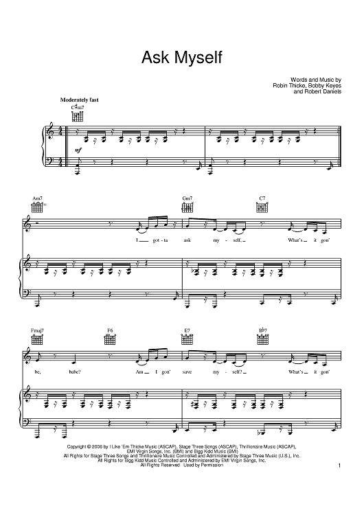 Digital Sheet Music for Ask Myself by Robert Daniels, Bobby Keyes, Robin Thicke scored for Piano/Vocal/Chords; id:401828