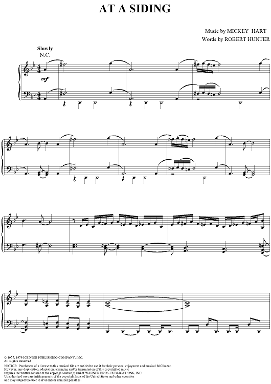 Digital Sheet Music for At a Siding by Robert Hunter, Mickey Hart, Grateful Dead scored for Piano/Vocal/Chords; id:267336