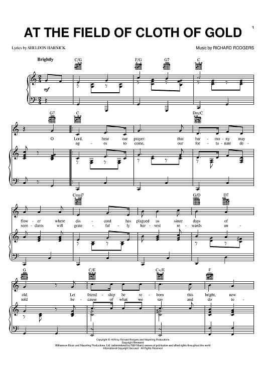 Digital Sheet Music for At The Field Of Cloth Of Gold by Richard Rodgers, Sheldon Harnick scored for Piano/Vocal/Chords; id:381407