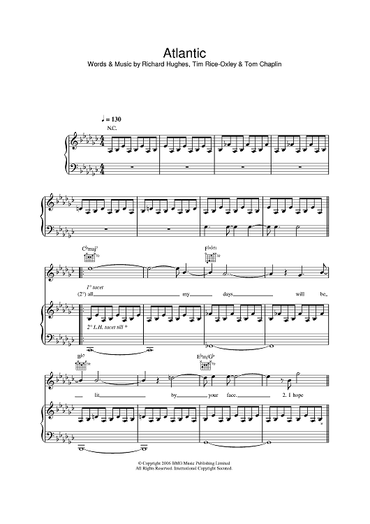 Digital Sheet Music for Atlantic by Keane, Tim Rice-Oxley, Tom Chaplin, Richard David Hughes scored for Piano/Vocal/Chords; id:391174