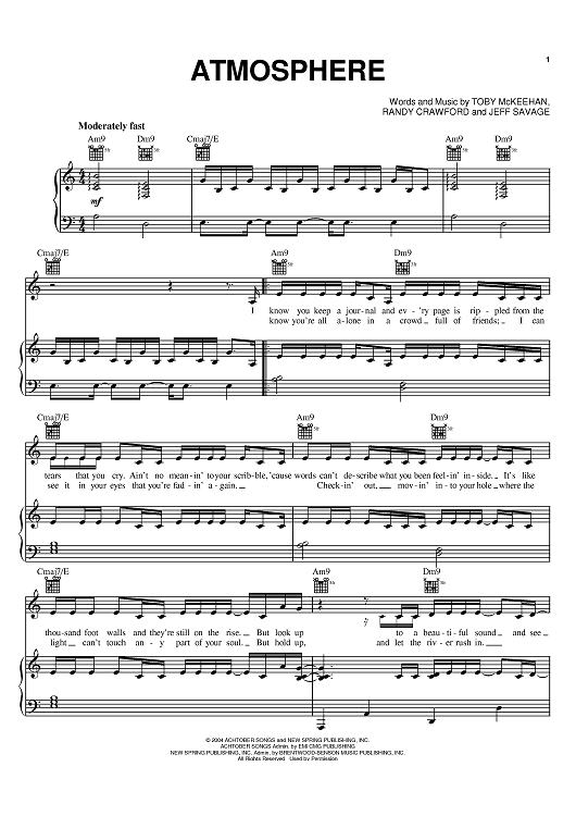 Digital Sheet Music for Atmosphere by tobyMac, Randy Crawford, Jeff Savage scored for Piano/Vocal/Chords; id:382018