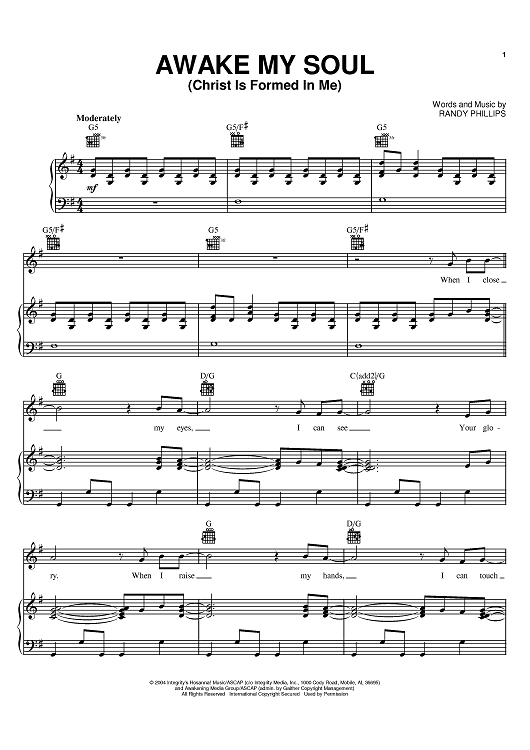 Digital Sheet Music for Awake My Soul (Christ Is Formed In Me) by Randy Phillips, Phillips, Craig and Dean scored for Piano/Vocal/Chords; id:381143
