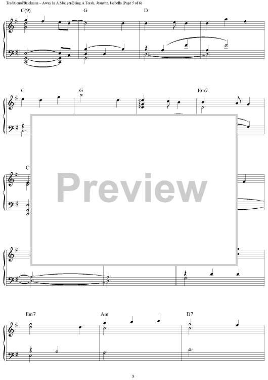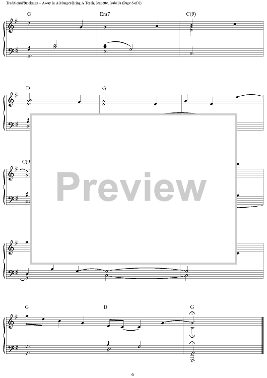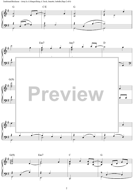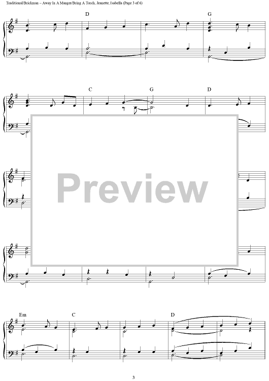 "Away in a Manger/Bring a Torch, Jeanette, Isabella" Sheet Music by Traditional