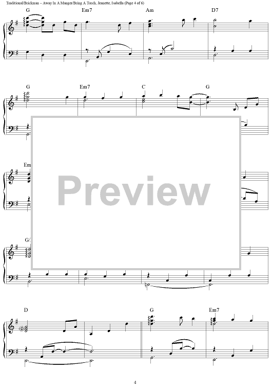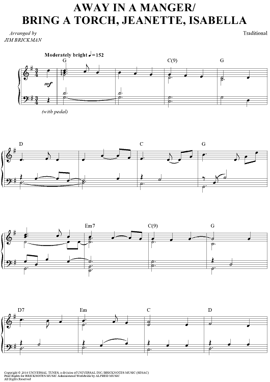 Digital Sheet Music for Away in a Manger/Bring a Torch, Jeanette, Isabella by Jim Brickman, Traditional scored for Piano/Chords; id:450038