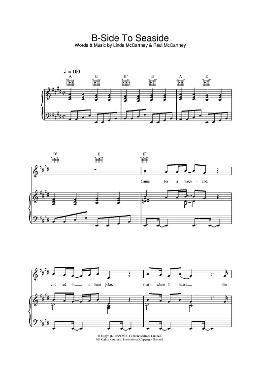 Digital Sheet Music for B-Side To Seaside by Paul McCartney, Linda McCartney scored for Piano/Vocal/Chords; id:389251