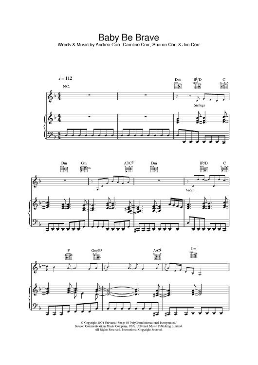 Digital Sheet Music for Baby Be Brave by The Corrs, Sharon Corr, Caroline Corr, Andrea Corr scored for Piano/Vocal/Chords; id:382929