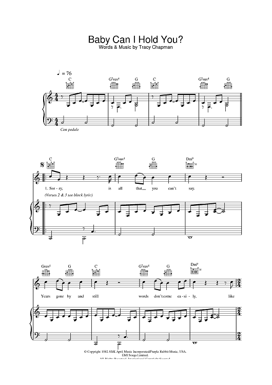 Digital Sheet Music for Baby Can I Hold You by Tracy Chapman, Boyzone scored for Piano/Vocal/Chords; id:389152