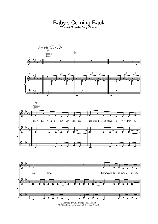 Digital Sheet Music for Baby's Coming Back by McFly, Andy Sturmer scored for Piano/Vocal/Chords; id:401314
