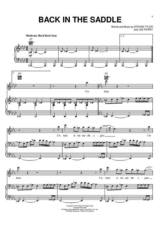 Digital Sheet Music for Back In The Saddle by Aerosmith, Steven Tyler, Joe Perry scored for Piano/Vocal/Chords; id:397610