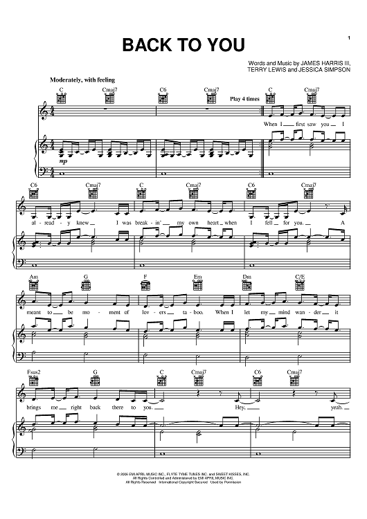 Digital Sheet Music for Back To You by Jimmy Jam, Terry Lewis, Jessica Simpson scored for Piano/Vocal/Chords; id:397260