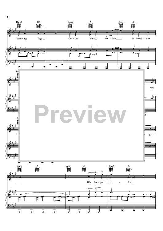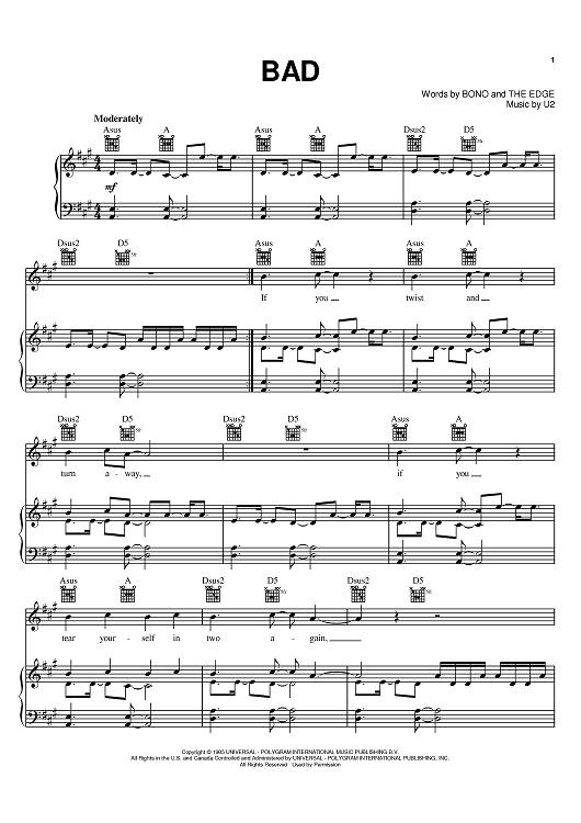 Digital Sheet Music for Bad by U2, Bono, The Edge scored for Piano/Vocal/Chords; id:381985