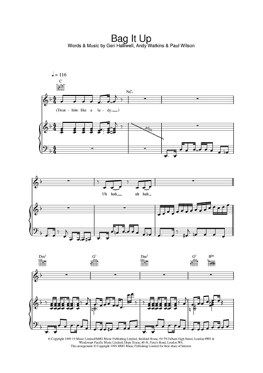 Digital Sheet Music for Bag It Up by Paul Wilson, Andy Watkins, Geri Halliwell scored for Piano/Vocal/Chords; id:382833