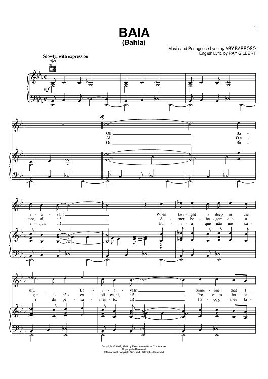 Digital Sheet Music for Baia (Bahia) by Ray Gilbert, Ary Barroso scored for Piano/Vocal/Chords; id:374803