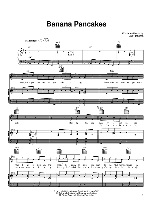 Digital Sheet Music for Banana Pancakes by Jack Johnson scored for Piano/Vocal/Chords; id:389786