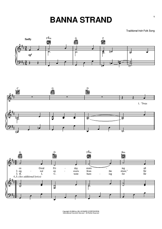 Digital Sheet Music for Banna Strand by scored for Piano/Vocal/Chords; id:393992