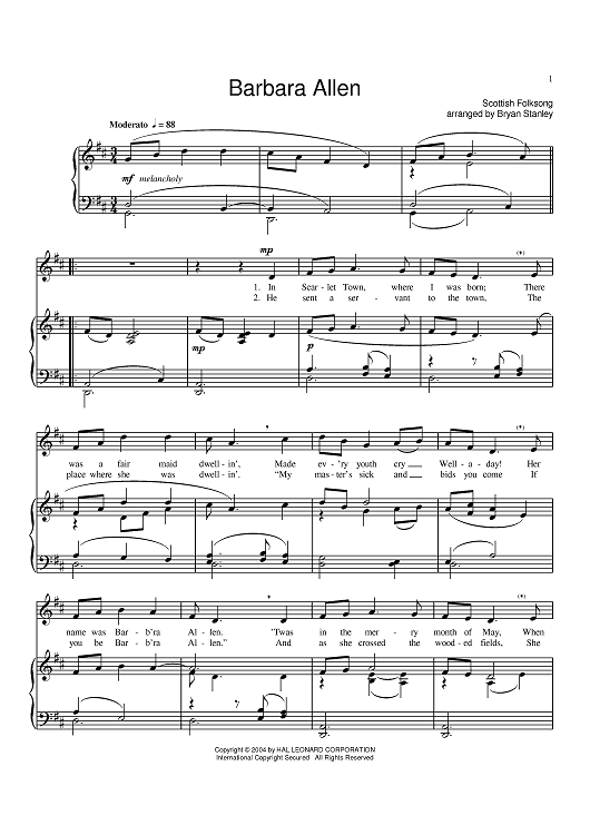 Digital Sheet Music for Barbara Allen by scored for Piano/Vocal/Chords; id:374514
