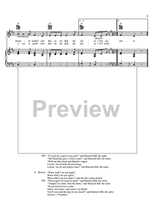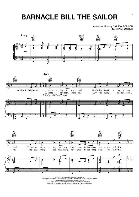 Digital Sheet Music for Barnacle Bill The Sailor by Frank Luther, Carson Robison scored for Piano/Vocal/Chords; id:379181