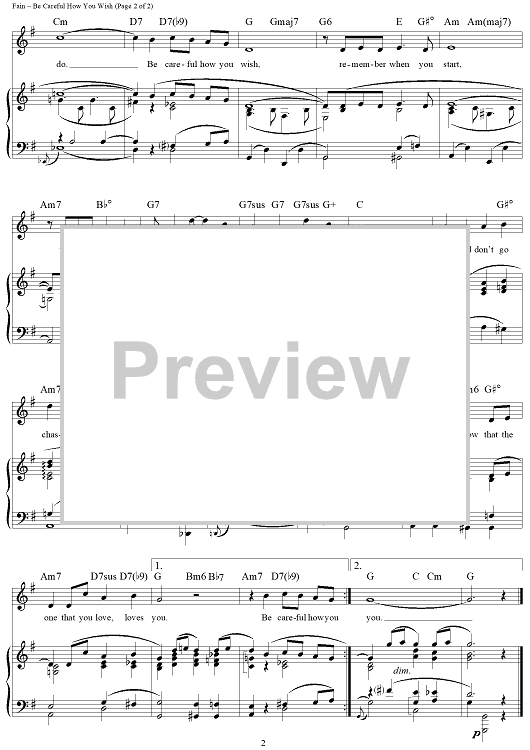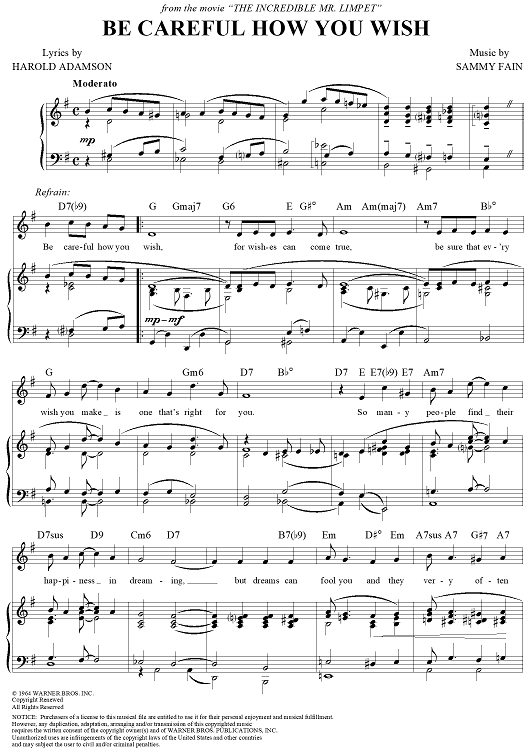 Digital Sheet Music for Be Careful How You Wish by Sammy Fain, Harold Adamson scored for Piano/Vocal/Chords; id:270077