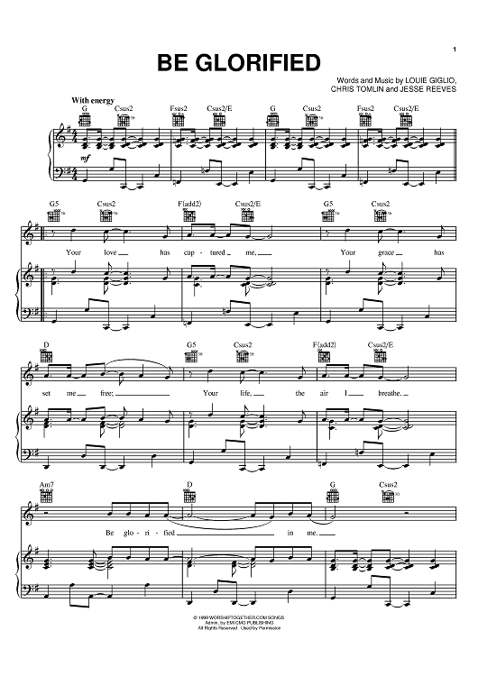 Digital Sheet Music for Be Glorified by Chris Tomlin, Louie Giglio, Tim Hughes, Jesse Reeves, Passion Band scored for Piano/Vocal/Chords; id:386471