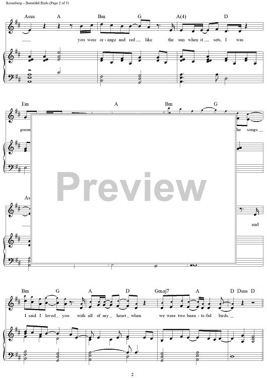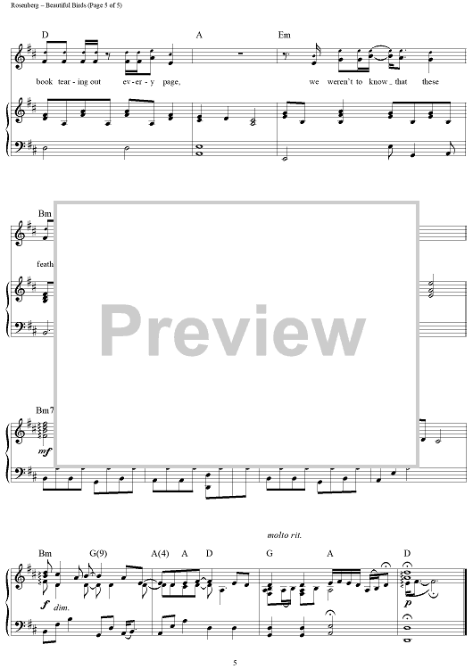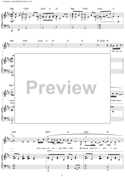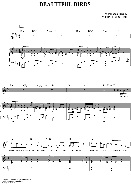 Digital Sheet Music for Beautiful Birds by Michael Rosenberg, Passenger scored for Piano/Vocal/Chords; id:462618