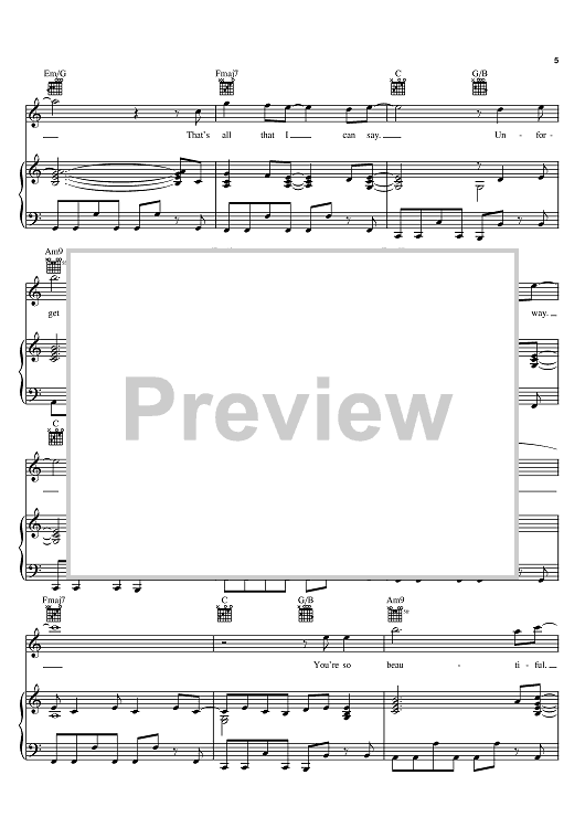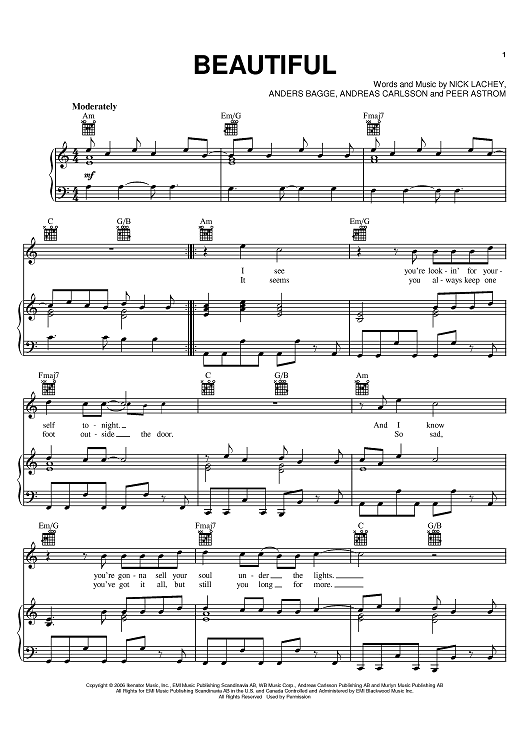 Digital Sheet Music for Beautiful by Andreas Carlsson, Nick Lachey, Peer Astrom, Anders Bagge scored for Piano/Vocal/Chords; id:401840