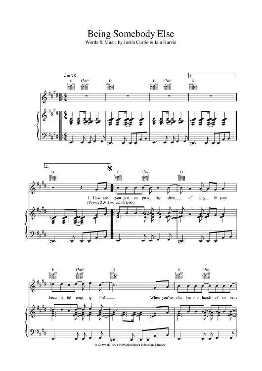 Digital Sheet Music for Being Somebody Else by Del Amitri scored for Piano/Vocal/Chords; id:377308