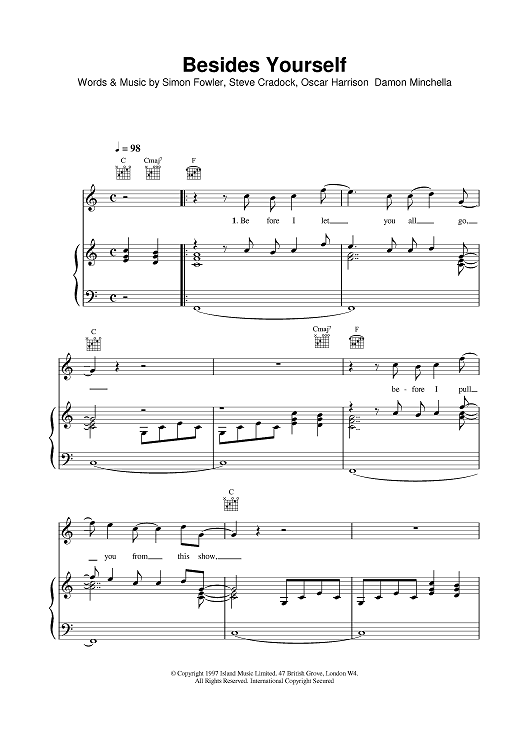Digital Sheet Music for Besides Yourself by Steve Cradock, Simon Fowler, Oscar Harrison, Ocean Colour Scene scored for Piano/Vocal/Chords; id:379851