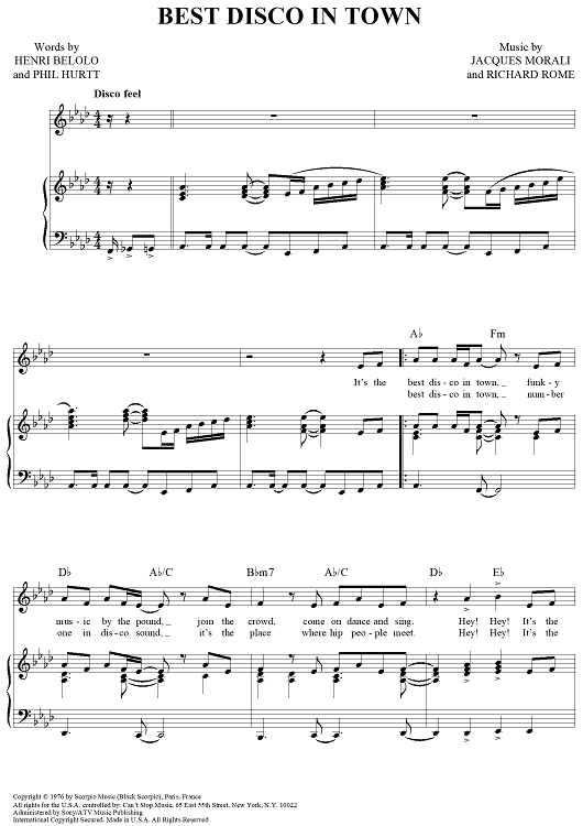 Digital Sheet Music for Best Disco in Town by Philip Hurtt, Jacques Morali, Richard Rome, Henri Belolo, The Ritchie Family scored for Piano/Vocal/Chords; id:362351