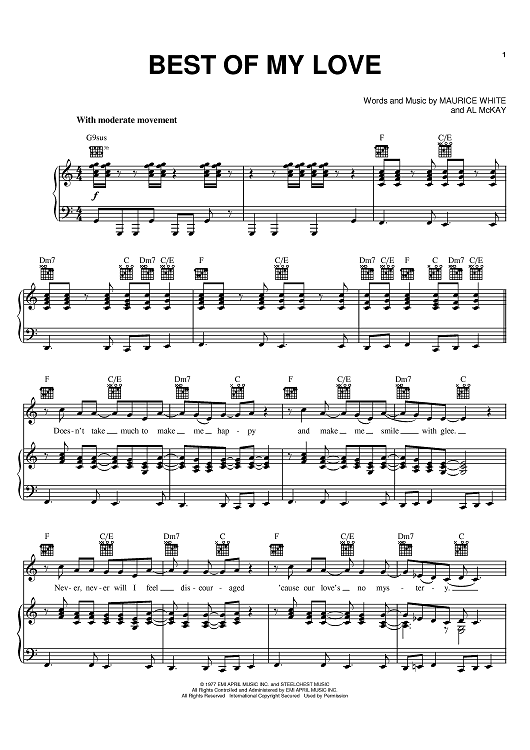 Digital Sheet Music for Best Of My Love by Maurice White, Al McKay, The Emotions scored for Piano/Vocal/Chords; id:368653