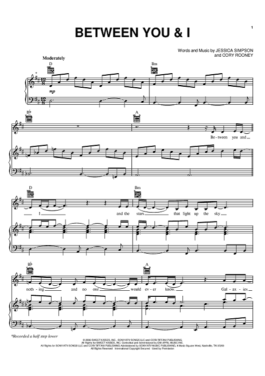 Digital Sheet Music for Between You And I by Jessica Simpson, Cory Rooney scored for Piano/Vocal/Chords; id:397261