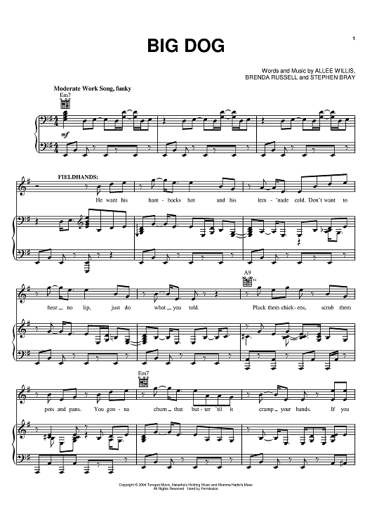 Digital Sheet Music for Big Dog by Brenda Russell, Stephen Bray, Allee Willis scored for Piano/Vocal/Chords; id:398462