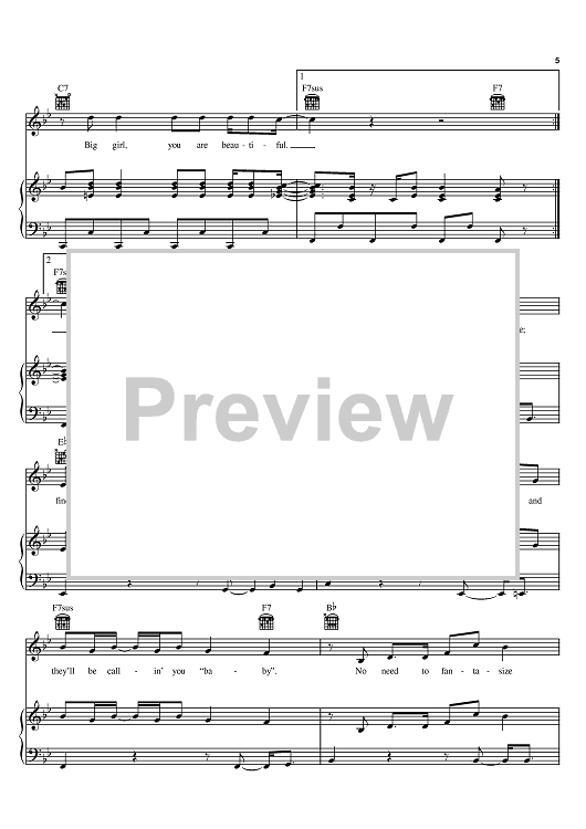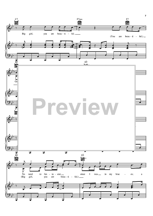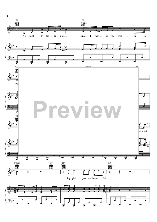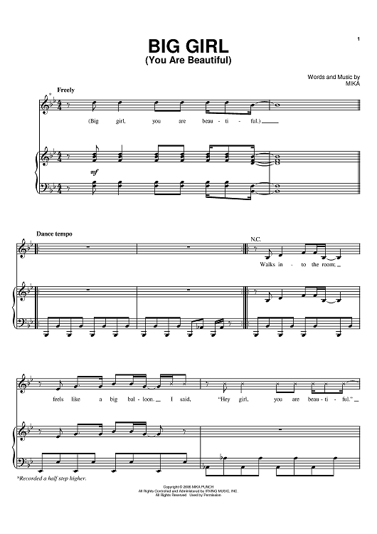 Digital Sheet Music for Big Girl (You Are Beautiful) by Mika scored for Piano/Vocal/Chords; id:397653