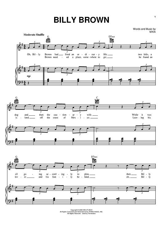Digital Sheet Music for Billy Brown by Mika scored for Piano/Vocal/Chords; id:397654