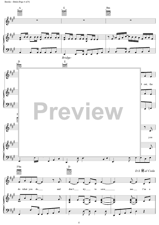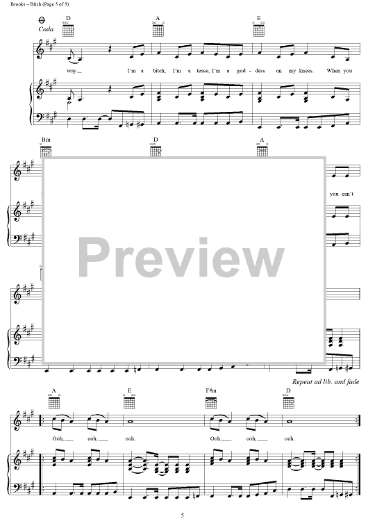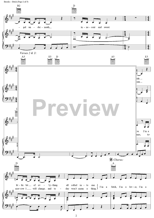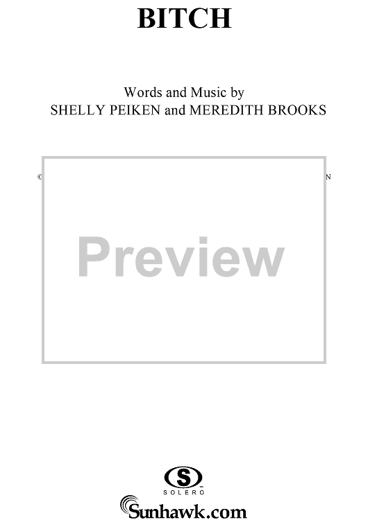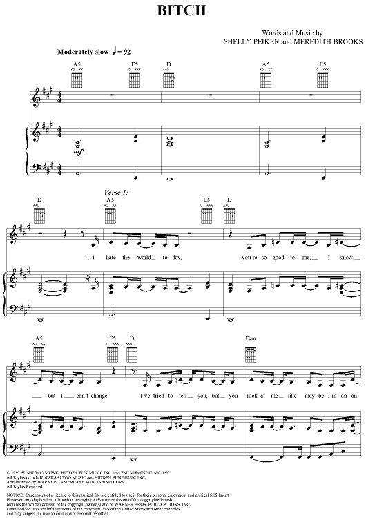 Digital Sheet Music for Bitch by Meredith Brooks, Shelly Peiken scored for Piano/Vocal/Chords; id:120309