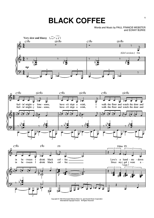 Digital Sheet Music for Black Coffee by Paul Francis Webster, Sonny Burke scored for Piano/Vocal/Chords; id:397244
