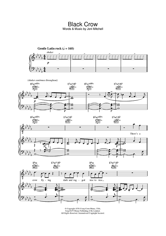 Digital Sheet Music for Black Crow by Diana Krall scored for Piano/Vocal/Chords; id:378477