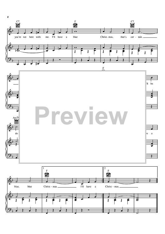 "Blue Christmas" Sheet Music by Elvis Presley