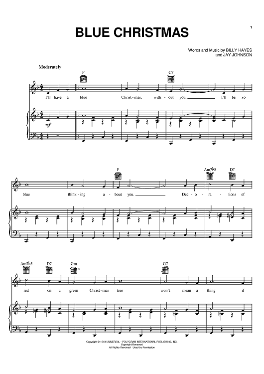 Digital Sheet Music for Blue Christmas by Elvis Presley, Ringo Starr, Harry Connick, Jr., Billy Hayes, Jay Johnson scored for Piano/Vocal/Chords; id:375028