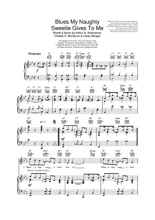 Digital Sheet Music for Blues My Naughty Sweetie Gives To Me by Arthur N. Swanstrom, Arthur Swanstrom scored for Piano/Vocal/Chords; id:382395