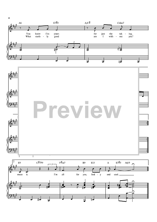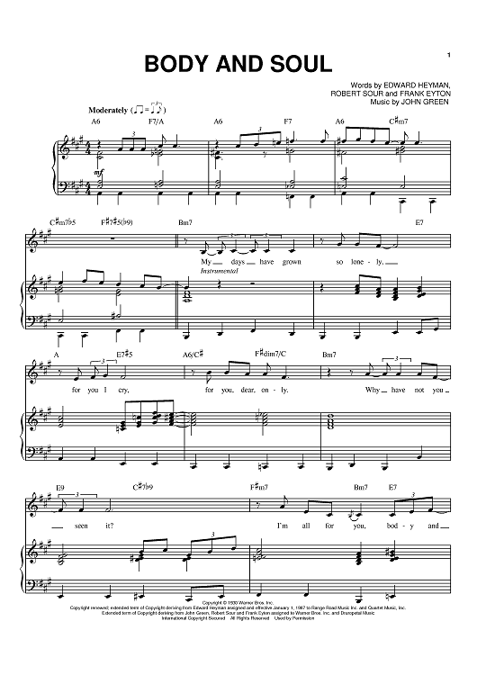 Digital Sheet Music for Body And Soul by Billie Holiday, Edward Heyman, Johnny Green, Frank Eyton, Robert Sour scored for Piano/Vocal/Chords; id:397156