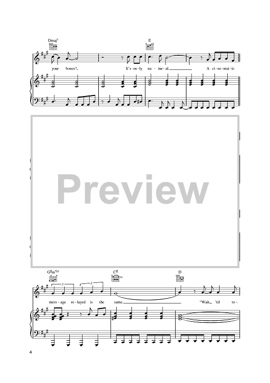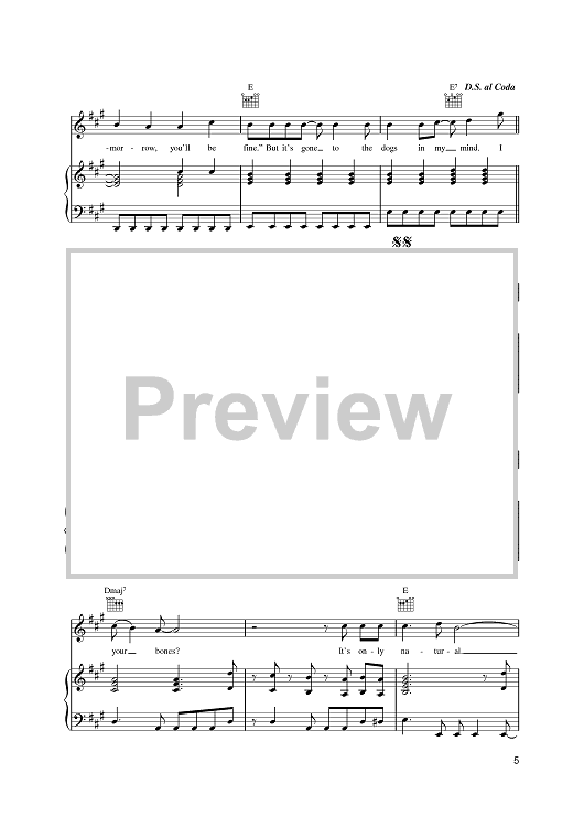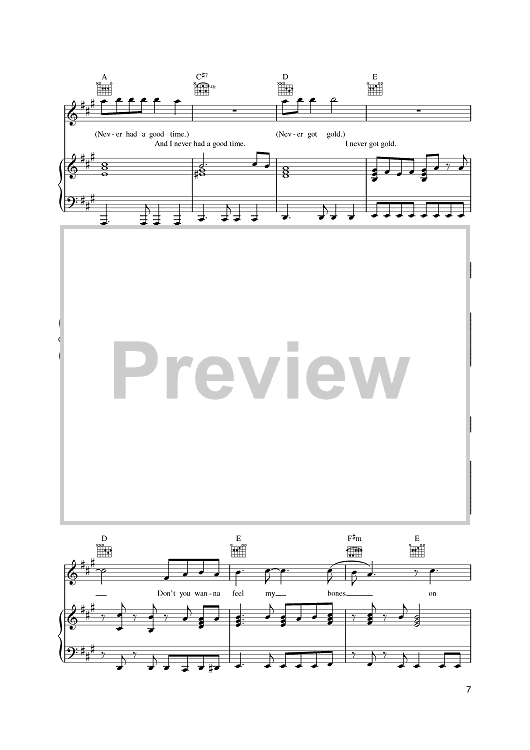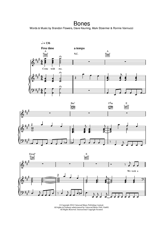 Digital Sheet Music for Bones by Brandon Flowers, Dave Keuning, The Killers, Mark Stoermer, Ronnie Vannucci Jr. scored for Piano/Vocal/Chords; id:397111