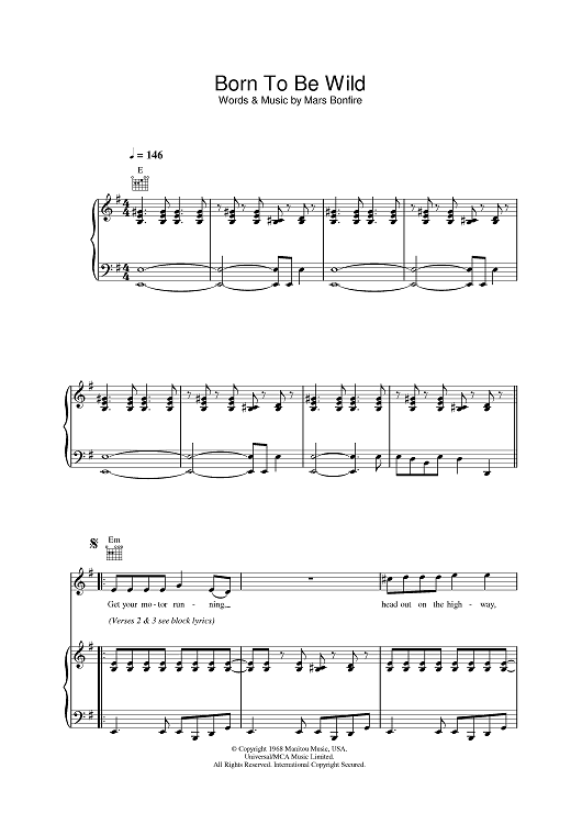 Digital Sheet Music for Born To Be Wild by Steppenwolf, Mars Bonfire scored for Piano/Vocal/Chords; id:391611