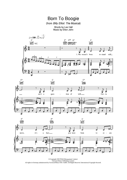 Digital Sheet Music for Born To Boogie by Elton John, Lee Hall scored for Piano/Vocal/Chords; id:398788
