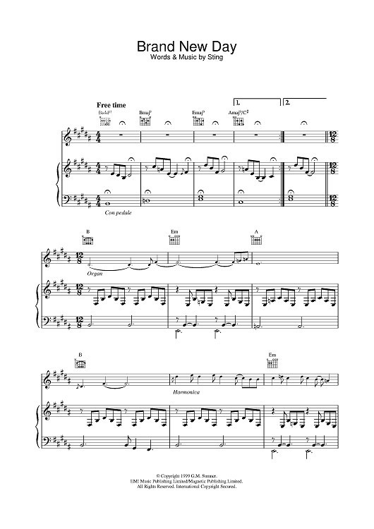 Digital Sheet Music for Brand New Day by Sting scored for Piano/Vocal/Chords; id:379090